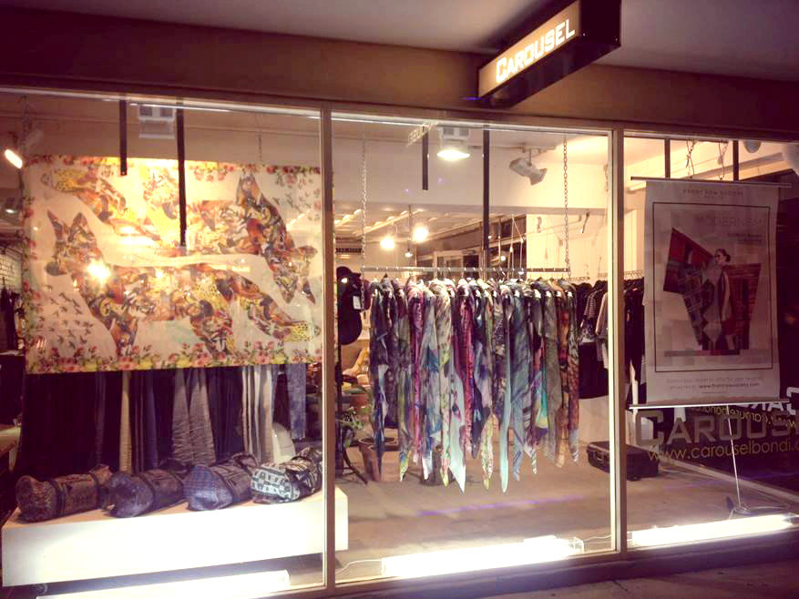 "Blind Fox" foulard showed on "Carousel" shop showcase, Australia