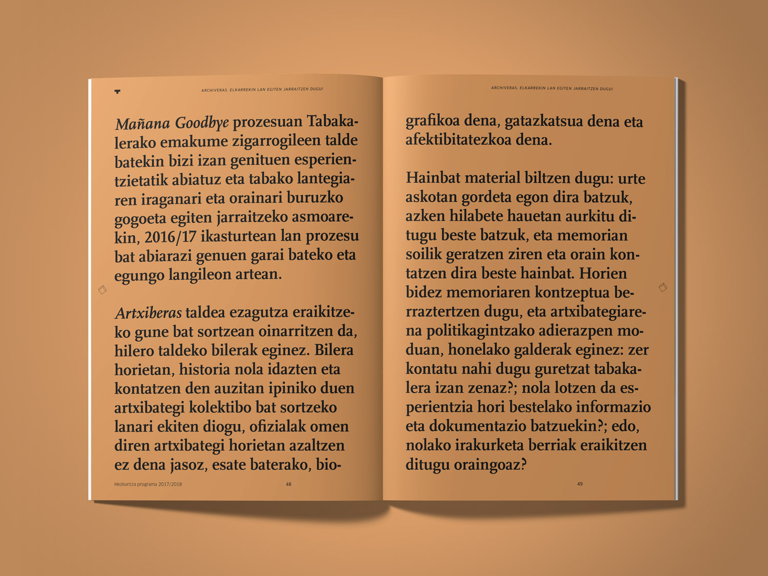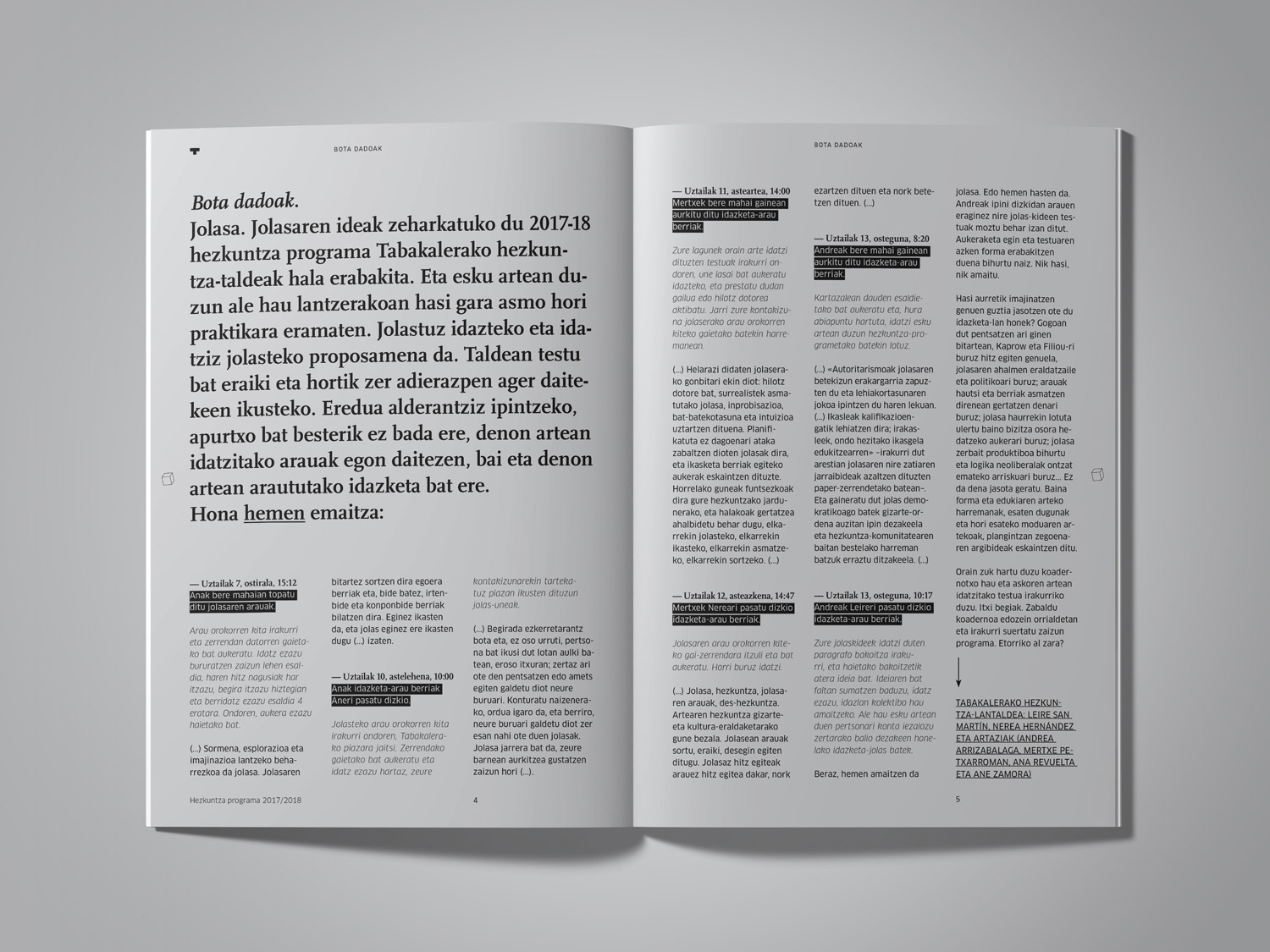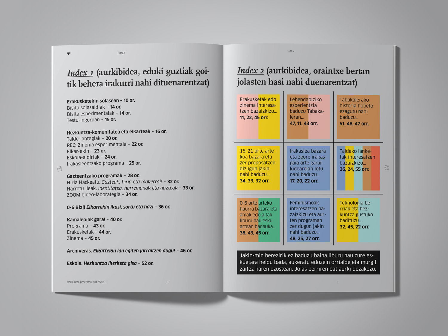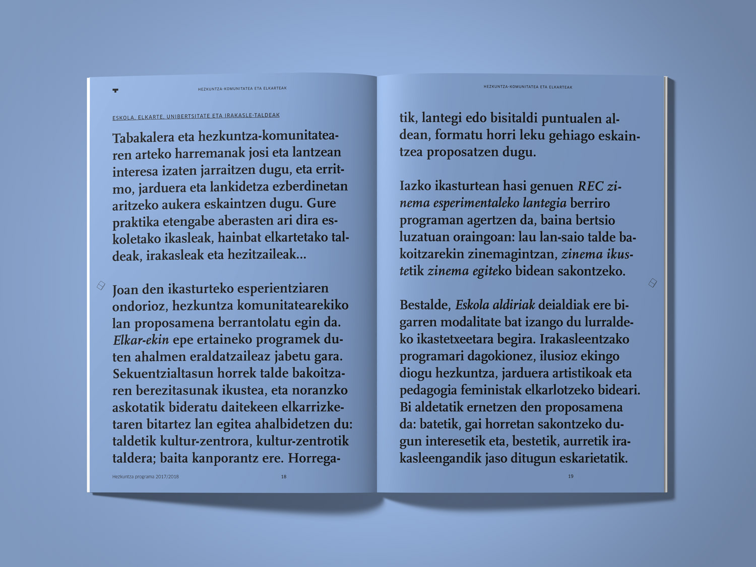 Programa de mediación 2017–2018 de Tabakalera, Centro Internacional de Cultura Contemporánea Education program 2017-2018 for Tabakalera, International Centre for Contemporary Culture